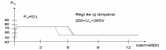 - Átlagteljesítmény a közvilágítási naptár szerint 66/63W