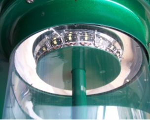 A világító diódák két soros áramkörben 9-9 db egység soros kapcsolásával üzemelnek. A LED-eket alul és felül egy-egy előre fényezett, nagytisztaságú alumíniumlemezből készült gyűrűs tükör veszi körül (2. ábra).