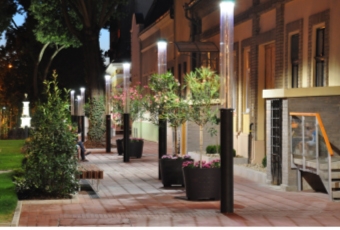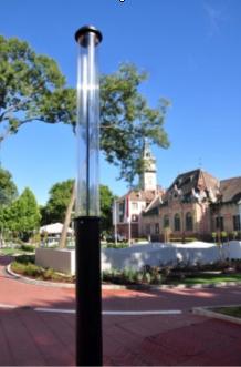 Egy parkban, sétányon telepített lámpatest szerves része a környezetnek. Méretei, formája miatt domináns elem, aminek nappali megjelenése csak esztétikai élményt jelent, mivel ekkor hasznos (világítási) funkciója nincs. Sötétedéskor megváltozik a helyzet: Az oszlop láthatósága, a forma háttérbe szorul, helyette a létrehozott világítási hatás és a megvilágított környezet a domináns.